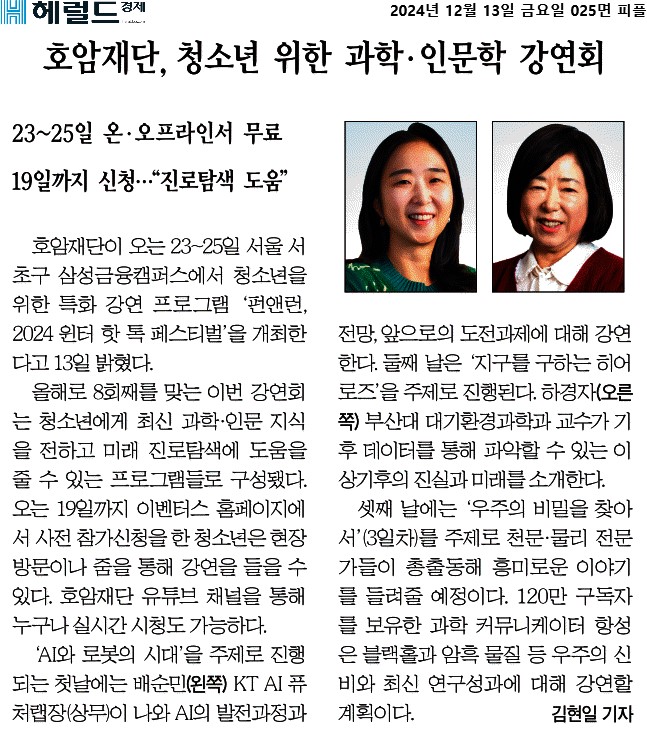 fnctId=bbs,fnctNo=17468 호암재단, 청소년 위한 과학• 인문학 강연회 date 2024.12.19 name GMCL e-mail view 30 file there is no file